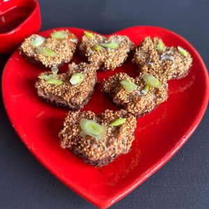 These golden, sesame-covered bites are rich, flavorful, and perfect for a festive Valentine’s Day snack.