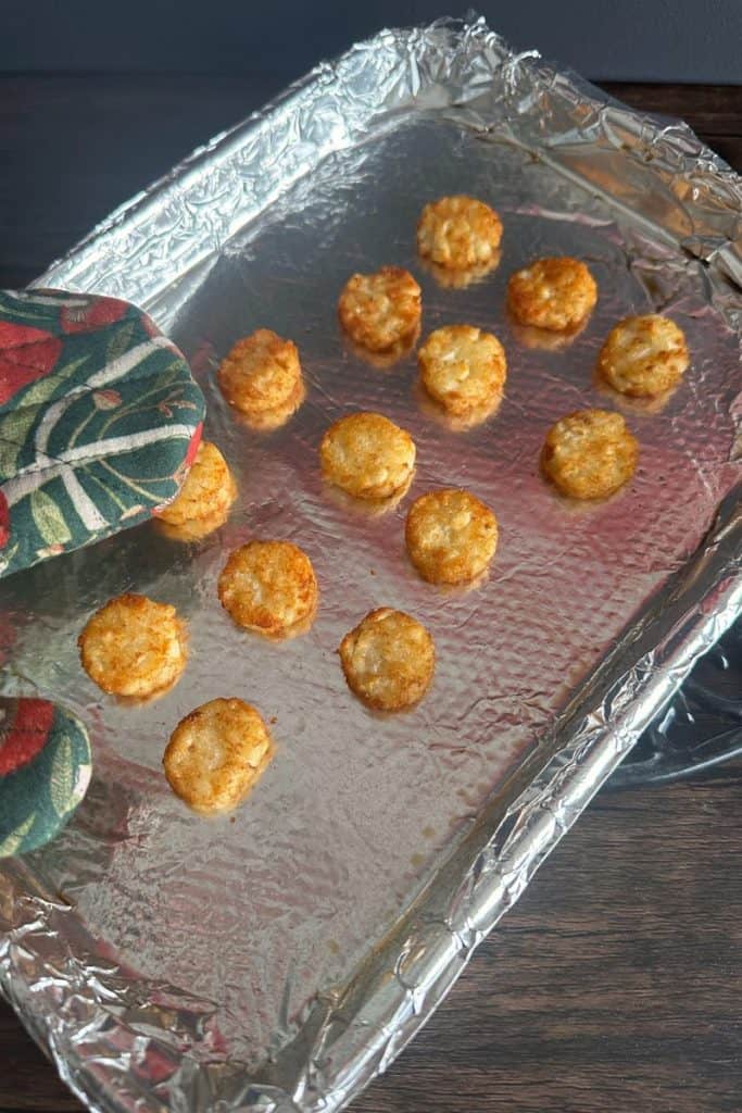 - Cook Tater Tots according to package on an oiled and foiled pan